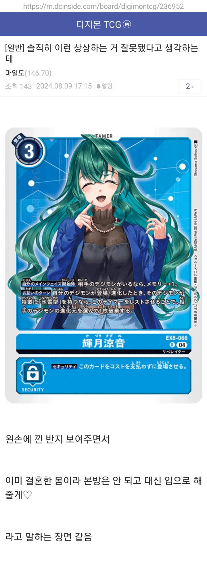 조그레스는 아니지만 카드게임 상으론 초궁극체로 표기되는 신규 디지몬을 파트너로 받았어 | 25.10.11 18:08 | | |