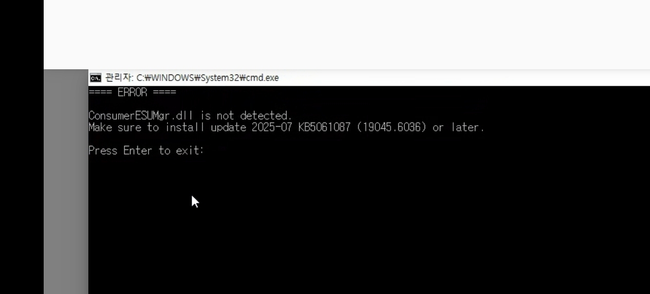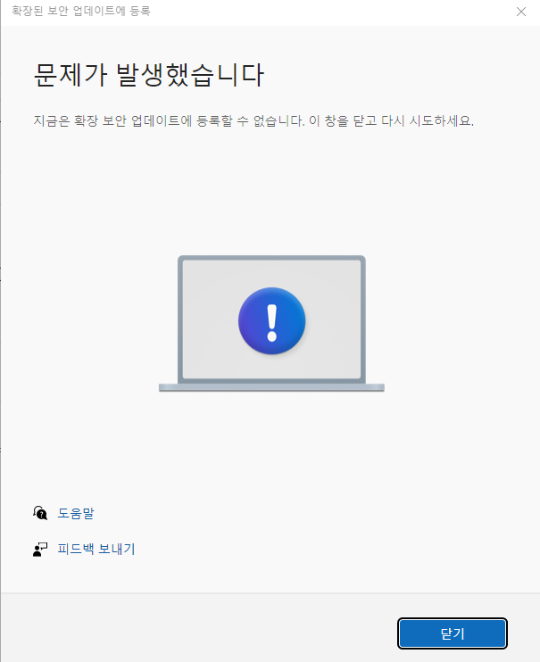 확장보안업데이트등록안됩니다 뜨네?