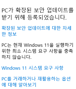 하드웨어 사양제한을 걸어서 년식이 된 피씨들은 업데이트 불가한게 큼