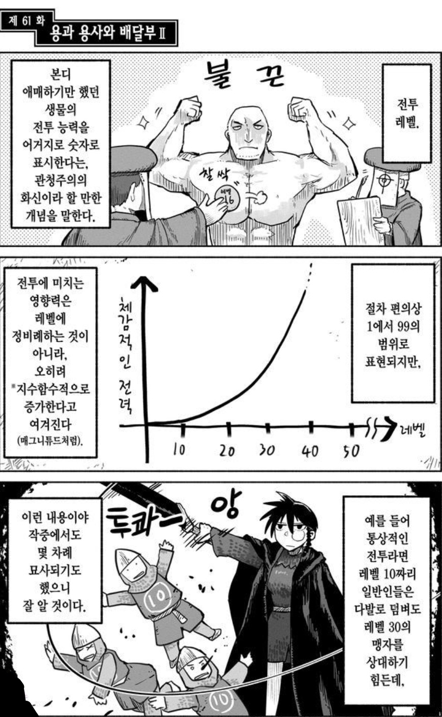 이런 설정에 레벨 50부터는 일기당천의 전술병기 취급 그래서 레벨 50이 거의 상한에 가깝고 레벨 53의 용사는 정말 레벨업에 ㅁㅊㄴ 같은 취급을 받음 레벨이 오르면 오를수록 더더욱 올리기 어려워져서 50 이후는 거의 없어서 그리고 팔눈박이 대마법사는 레벨 76이다 ㅋㅋㅋㅋㅋㅋㅋ | 25.10.12 09:20 | | |