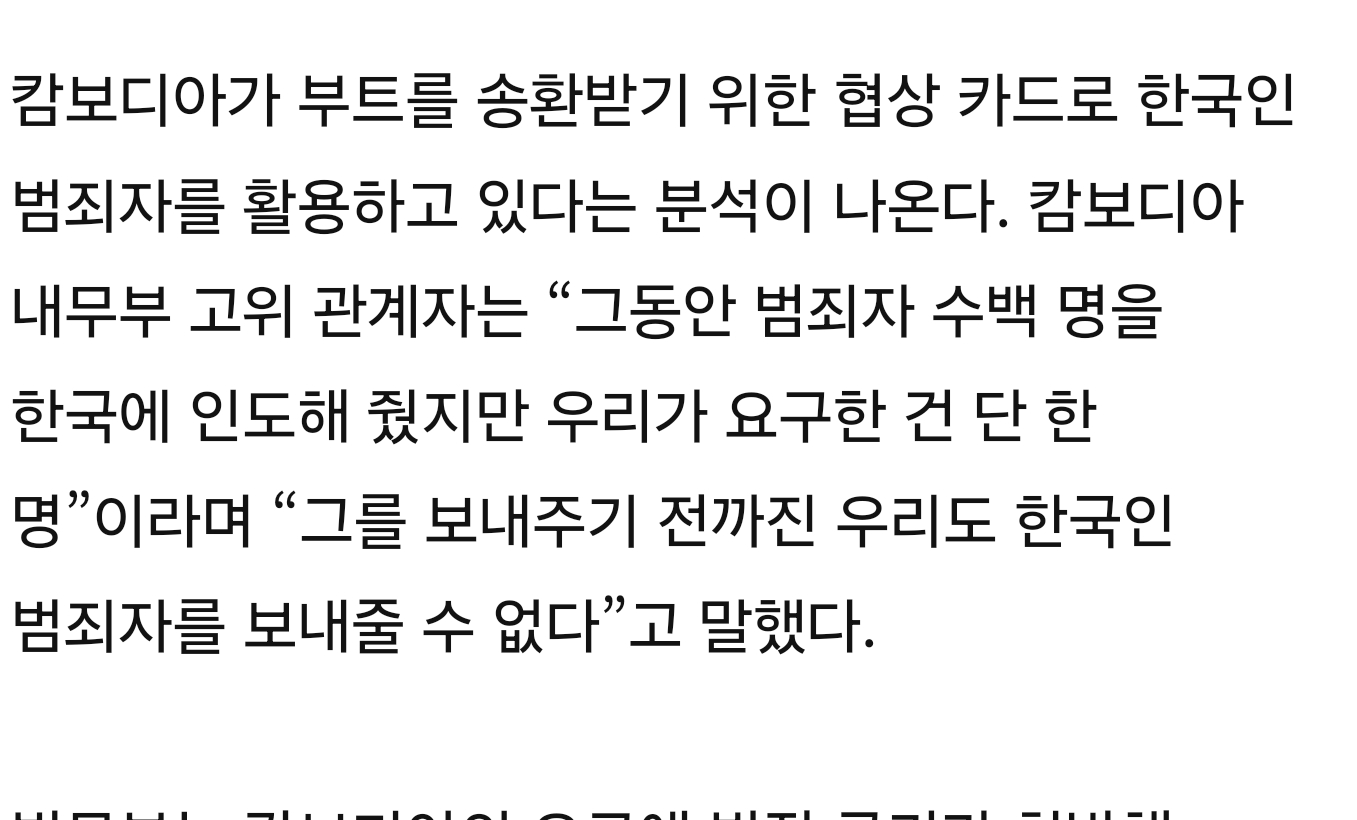 기사 보니까 있는 모양ㅇ 캄보디아 현정부 비판하는 사람 빨리 캄보디아로 보내라고 하나봄 | 25.10.12 09:43 | | |