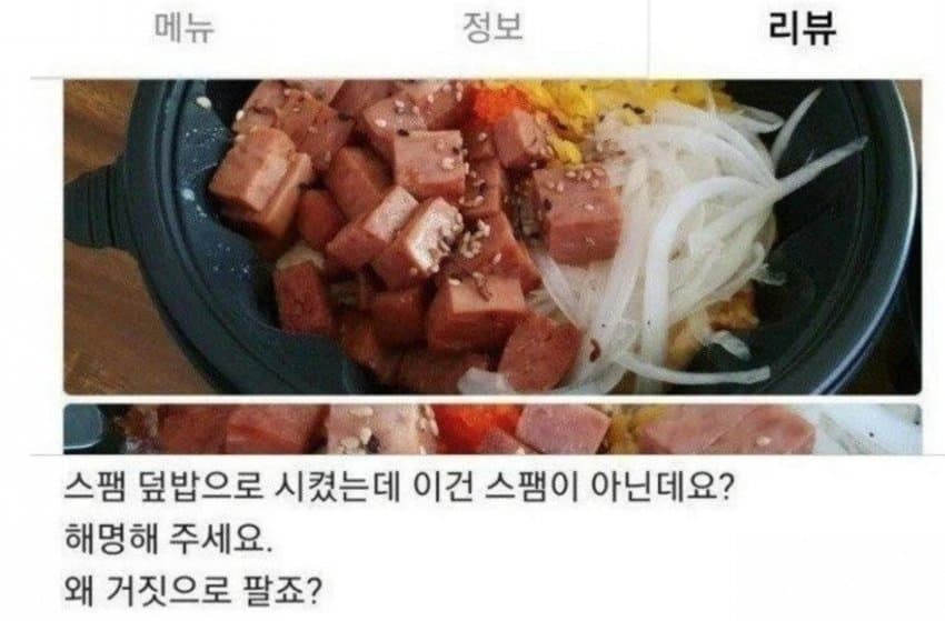 그럼 메뉴 이름을 순대국이 아니라 당면탕이나 본문에 나온 그대로 돼지머리 곰탕이라고 바꿔야지 스팸 덮밥 시켰는데 런천미트 오는거랑 뭐가다름? 페퍼로니 피자 시켰는데 치즈피자 위에 천하장사 올려서 와도 그냥 먹어?