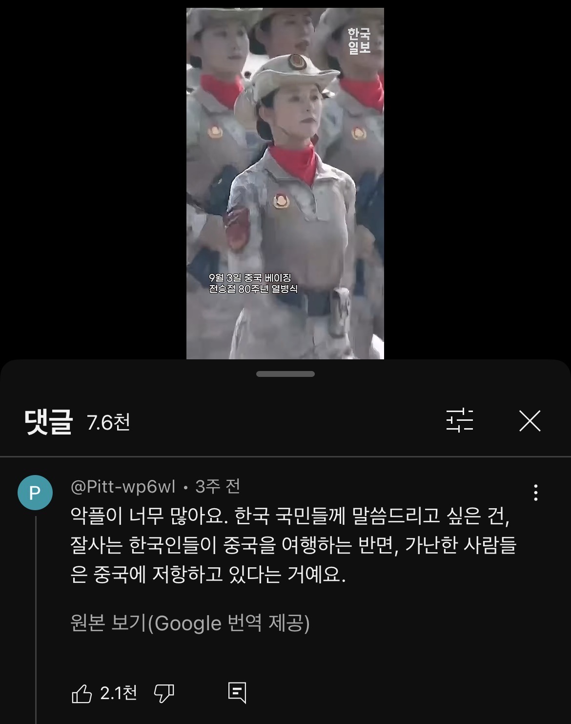 '이게 다 내가 싫어하는 세력이 중국 키워줘서 그런거다 걔들만 아녔으면 차가운 경제의 논리로 중국에 팔릴일도 없었다 대한민국을 지키기위해 ㅇㅂ를 지키기위해 오늘도 한국 좋아서 한국에 돈쓰러 온 중국인 관광객들이 모이는 한국인들이 운영하는 가게에 훼방놓기위해 시위라는 이름의 깡패짓을 해야겠다' | 25.10.12 10:44 | | |