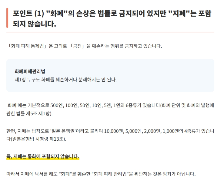 국내법기준 화폐훼손은 동전만 해당됨 | 25.10.12 14:12 | | |