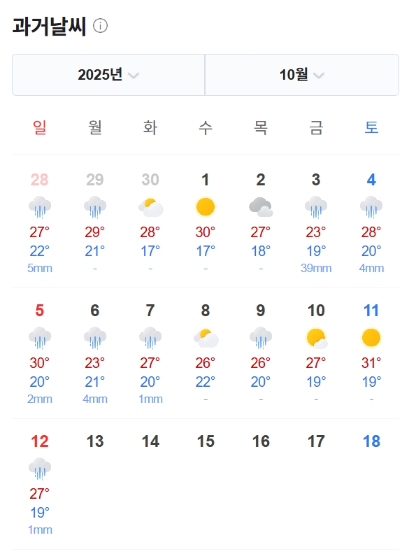 10월까지 늦더위 그리고 계속 내리는 비.. 가을은 이제 1개월 반 정도인가..