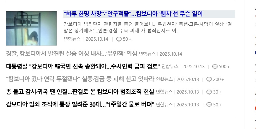 중국, 일본, 한국의 범죄단체들이 단속이 심해지니 동남아나 제 3국으로 기점을 바꾼다는 소식은 꾸준하게 들었는데 저렇게까지 심각할지 몰랐음 | 25.10.14 06:30 | | |