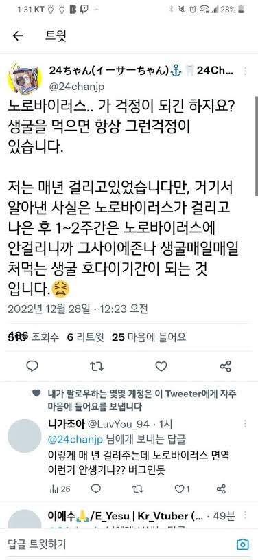 그 바이러스를 굴에 뿌려서 굴을 더 저항하게 만들자 | 25.10.14 11:14 | | |