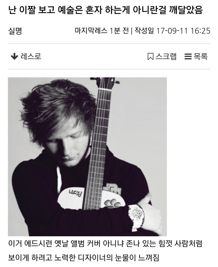 에드 시런 기타 그림자마냥 마이크와 얼굴 사이의 머리카락이 화룡점정이네