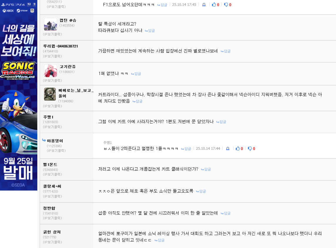 카트 유저들 이제 소닉레이싱한다던데 진짜인가?