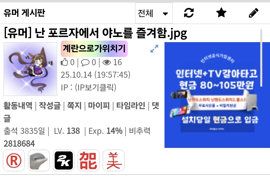 야 여기 디첩근첩이다!!!! | 25.10.14 20:04 | | |