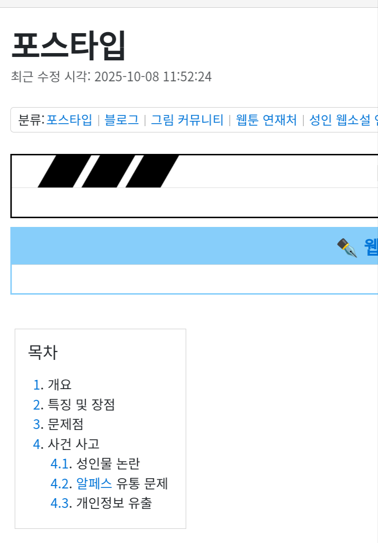 대/포타(Postype)/시대 써방(써치 방지)도 그렇고 포타에 알페스 쓰는 걸 말하는 걸 거임. | 25.10.14 21:31 | | |