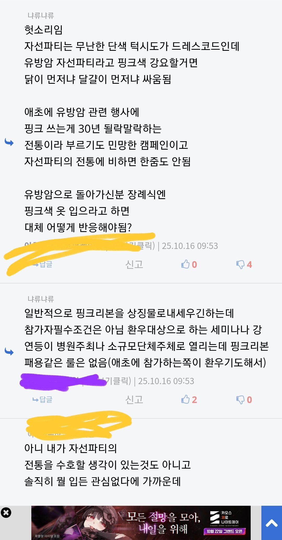 그리고실제로 기사사진을본 실제 유방암환우들은 분노했고 그게중요한거임 | 25.10.19 01:52 | | |