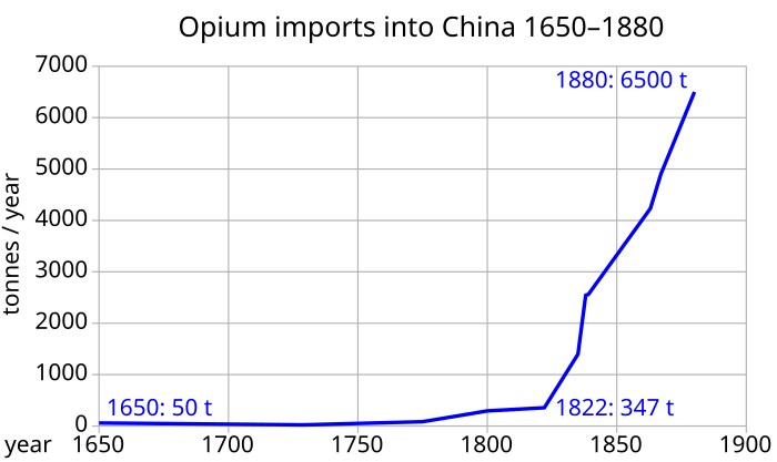 사람들이 아편전쟁 이후로 영국산 아편 안팔렸다고 오해하는데 1907년에 청나라가 영국이랑 맺은 협정으로 아편 수입 쿼터 줄이기 전까지 아편 수입량은 계속 상승일변도였음