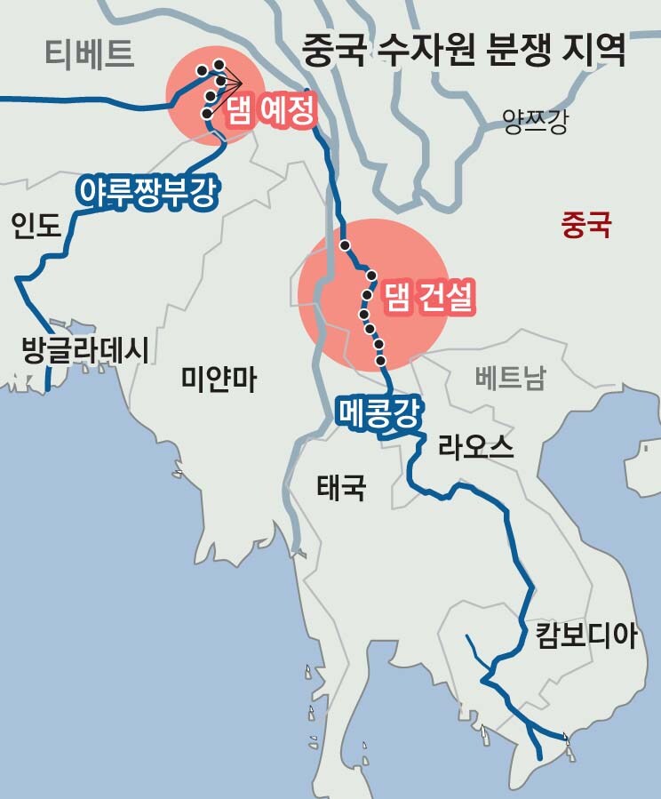 중국이 댐을 만들어서 자기네 부족한 수자원 보충하니깐 당연히 피해입은 동남아 국가들은 반발하고.