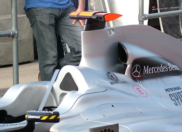 블레이드(칼날) 롤 후프는 기존 A형 에어박스에 생기는 공기 저항을 줄이고 차량 후방으로 흐르는 공기 흐름을 개선하기 위해 메르세데스 W01 후기형에 현대 F1에 오랜만에 돌아온 디자인 개념임. 문제는 FIA의 충격 로드 저항량에는 만족하지만 A형과 달리 앵커 포인트의 구조적인 충격 분산 문제가 취약점이 됨. 그럼으로 순간적인 로드에 A형과 같이 충격을 분산하는게 아닌, 일직선으로 전달되었기에 앵커가 쉽게 손상되는 취약점이 있었음. 블레이드 롤 후프 설계는 공기 역학적으로도 문제점이 있었는데, 에어박스가 양옆으로 붙어있어서 이론적으로나 윈드 터널 테스트 같은 직선으로 가는 실험에서는 문제가 안됨. 하지만 경주 차량은 직선만 달리는게 아니라, 수많은 코너를 돌아야 함. 저 블레이드 구조로 인해 코너를 돌 때 받음각 쪽 박스에는 공기가 유입이 되지만, 다른 반대쪽은 공기 흐름이 줄어드는 불균형 현상이 생김. 그로 인한 엔진으로 향하는 공기량도 불규칙적이 되어, 큰 효과를 보지 못하게 시즌 후반기 차체 업데이트 치고는 큰 효과를 보지 못함. (물론 브런 GP 시절에서 메르세데스로 넘어오면서 제대로 된 차량 준비도 못해서 뭐라도 해야할 시기라서...) | 25.10.19 23:28 | | |