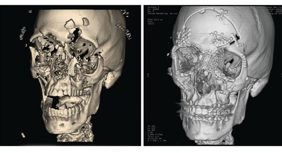 곰에게 공격받고 살아남아 두개골 복원한 사람 뼈 사진