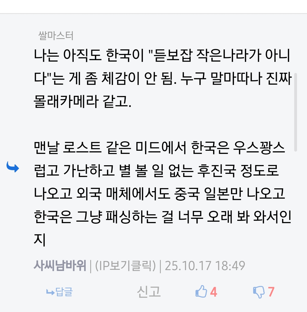 니가 재밌으면 된거지 뭐 남 눈치 볼거 뭐 있누 | 25.10.21 04:38 | | |