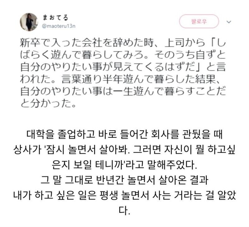 노는것도 놀아본 사람이 잘 논다고 전역하고 1주일 놀고 바로 취업해서 일하는거 10년 해보니 노는법도 모르겠음 | 25.10.21 08:48 | | |