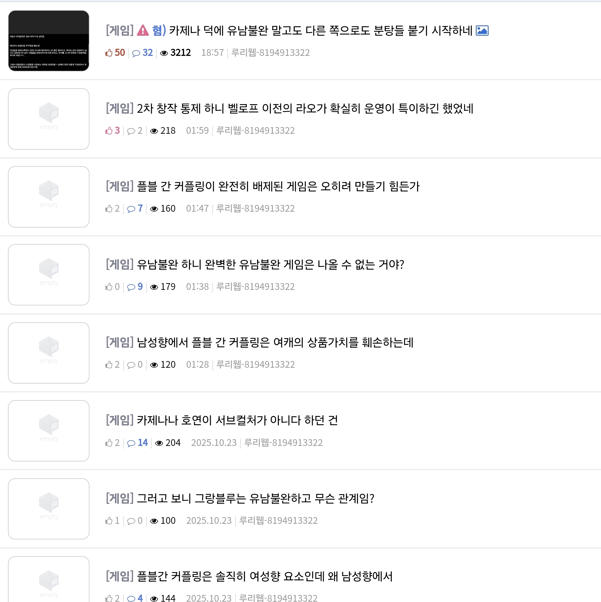 누구 부계인지는 모르겠는데 어떻게 글 쓴게 다 유남불완 뿐이냐? | 25.10.24 19:11 | | |