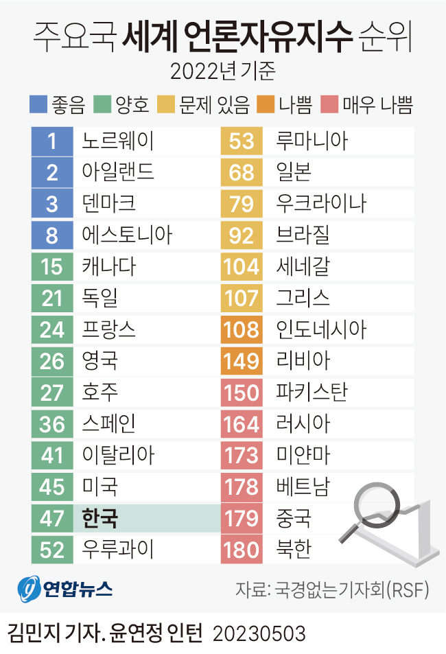 정확하게는 언론 신뢰지수 언론자유는 정권따라 다르긴 한데 왠만한 개소리나 가짜뉴스를 지껄여도 처벌이 없어서 높은편임 | 25.10.25 14:32 | | |