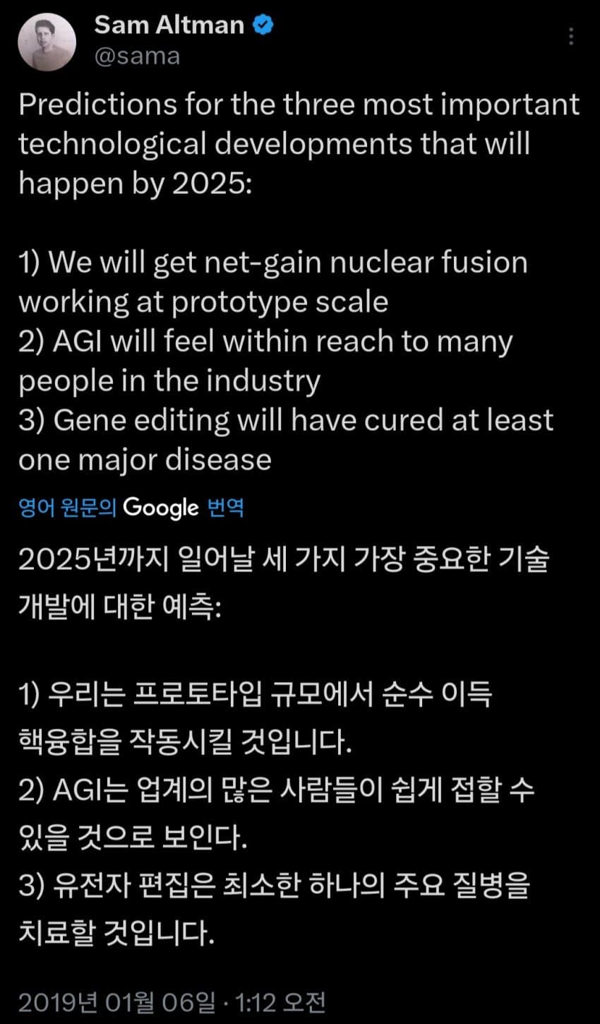 AI에 친화적인 커즈와일, 알트먼 다 예측 빗나가고있는 중이어서 저 사람들이 하는 미래예측도 별로 의미없을거라고 생각함.