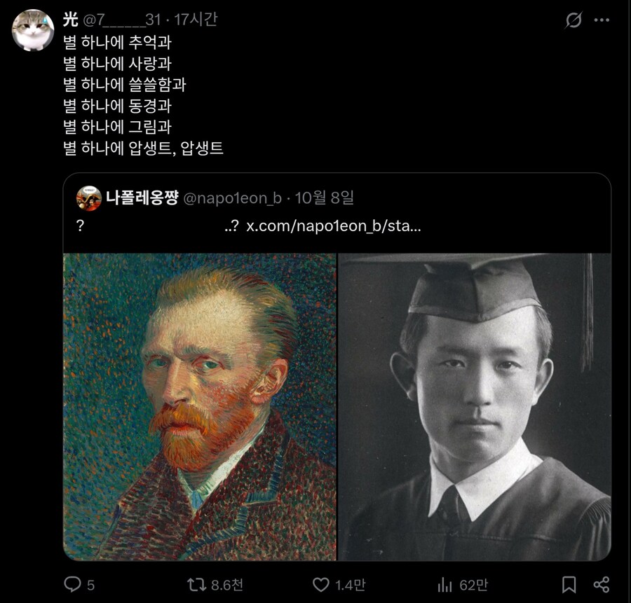 고흐코스프레: 미술학원에서 애들 가르칠 때, 할로윈 이벤트로 고흐코스프레 한 적이 있었는데, 그때 다들 코스프레인줄 모르고, 봇치냐의 붕대만 보고 아프냐고 물어본 적이 있었음. ㅋㅋㅋ 그 일을 떠올리며, 할로윈 기념으로 고흐 코스프레 한 것. 옆에 새로 그리는 것: 이것도 봇치냐, 새로운 코스튬 만드는 중. ㅋㅋ 완성되면 고흐코스처럼 뒤집어 쓸 계획.