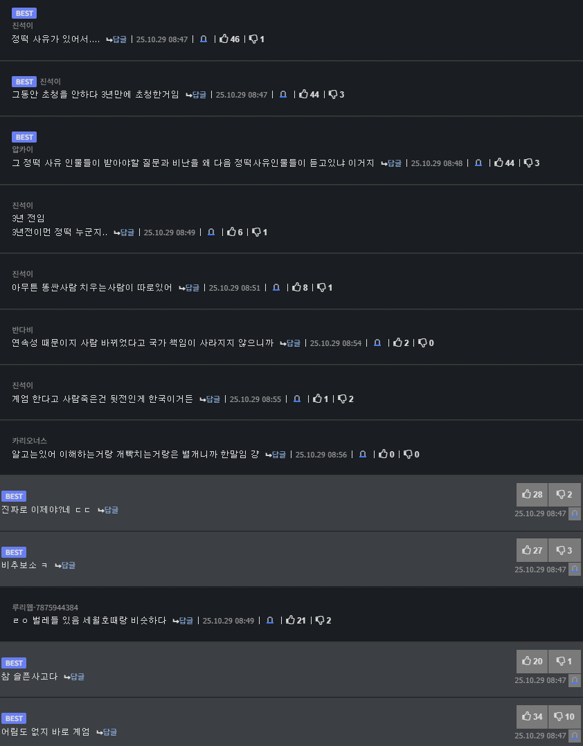 지들말 안들으면 그냥 벌레고 적폐임 사유는 필요치 않음 레퍼토리가 맨날 그런식 | 25.10.29 09:12 | | |