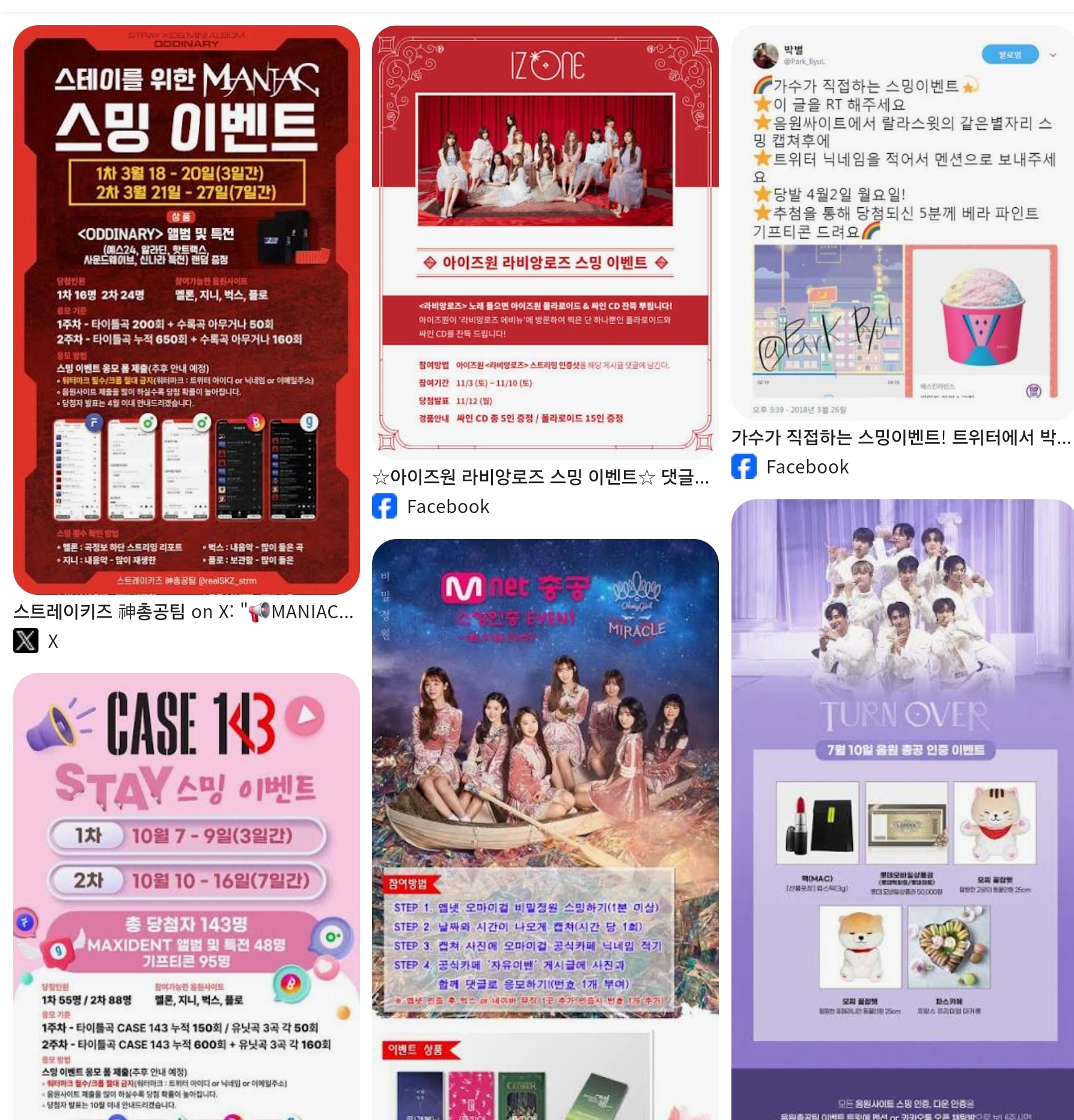 이건 가수가 직접하는데요?? 이거말고 소속사에서 이벤트 스샷도 올려드려요?? 이사람들 다 벌금이나 구속됐나요?? | 25.10.30 18:06 | | |