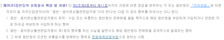 음반·음악영상물관련업자등(이세돌)이 제작·수입 또는 유통하는 음반등의 판매량을 올릴 목적(스밍)으로 여기까지 같은걸로 시비거는거 같은데 관련된 자로 하여금 부당하게 구입하게 하는 행위. 여기서 갈린다고 | 25.10.30 18:51 | | |