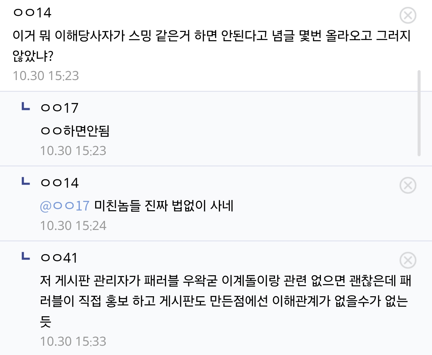 니들이 트위터에서 했음 불특정 다수에게 했으니 상관없다. 근대 팬카페? 심지어 우왁굳과 패러블이 운영해? 여기 가입했을때부터 관계자라고 | 25.10.30 18:55 | | |