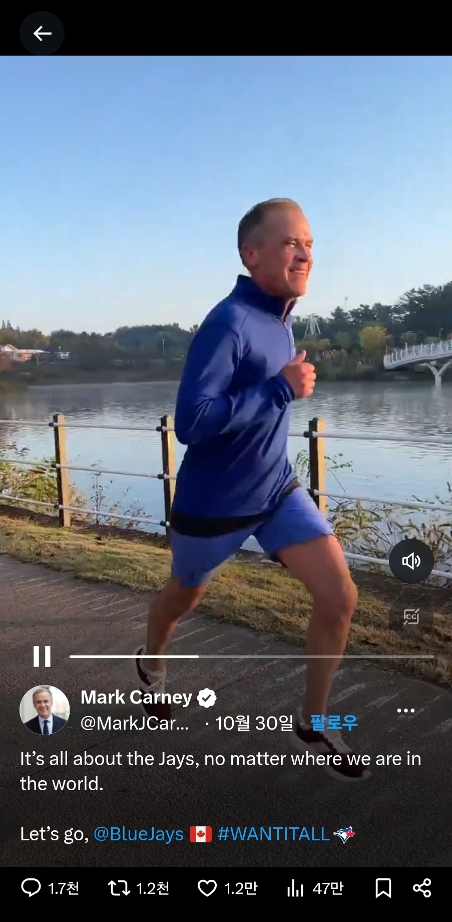 ai야 캐나다 총리가 경주에서 아침조깅 하는 짤 만들어줘