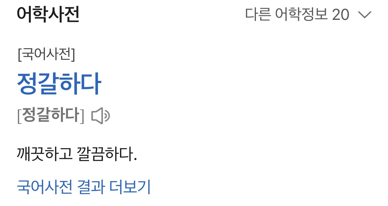 정갈하다가 무슨뜻이라고 생각하는거야? | 25.10.31 23:48 | | |