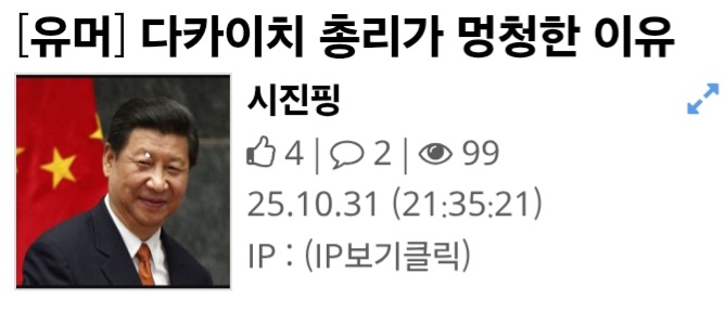 시진핑 입장에선 엄청 맞는 말이긴 함 ㅋㅋ | 25.10.31 21:41 | | |