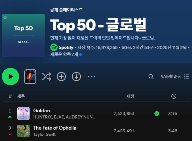 재생횟수 진짜 한 끗 차이라 다음주도 이게 유지될지는 모르겠다.