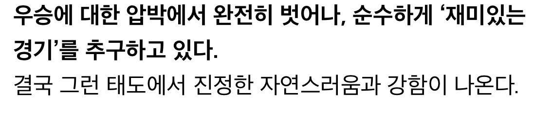 우승에 대한 압박에서 완전히 벗어나, 순수하게 ‘재미있는 경기’를 추구하고 있다.