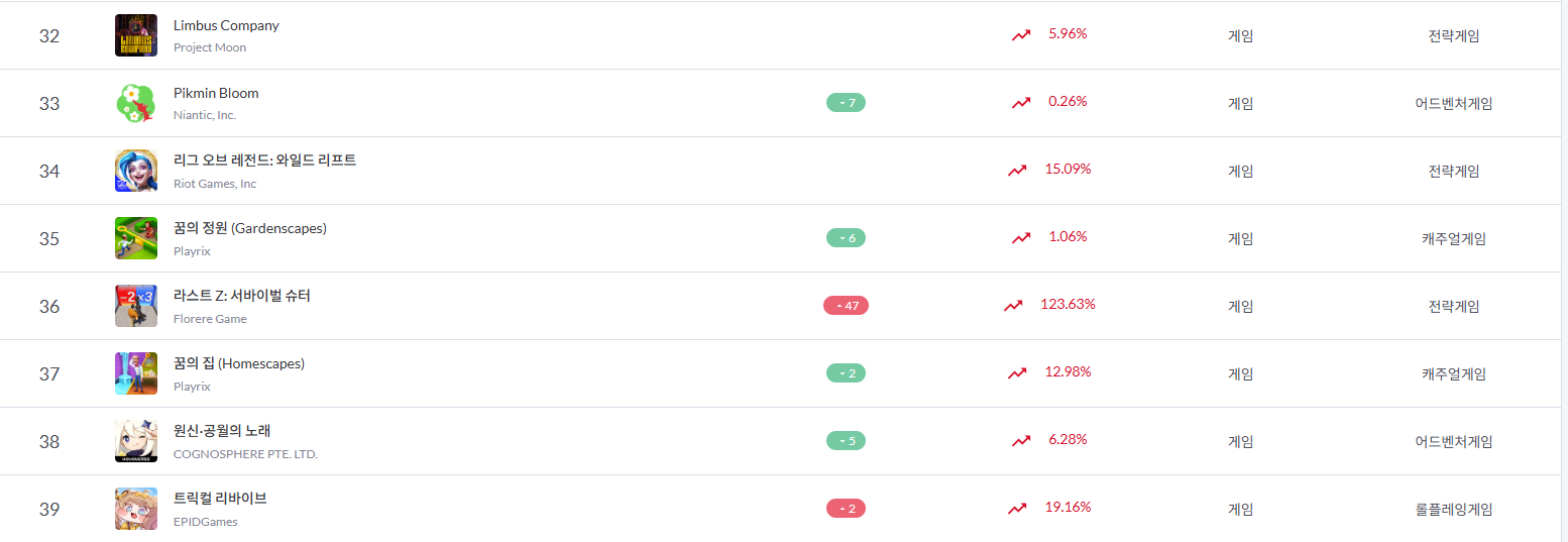 (짤은 이용자 수 순위) 와 찾아보니까 내 예상이랑 반대네 ㅋㅋ 트릭컬이 이용자 수가 많고 매출이 더 낮을 줄 알았는데 오히려 트릭컬 매출이 림버스보다 많고 이용자수가 더 적더라 신기방기 | 25.11.07 21:49 | | |