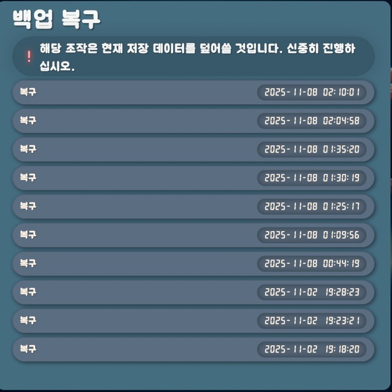 세이브 백업 눌러보면 세이브파일 꽤 남아있는데 거기서 사망 이전꺼 불러오면 파밍한건 다 날아가지만 착용장비는 남아있음 ㅋ | 25.11.09 02:54 | | |
