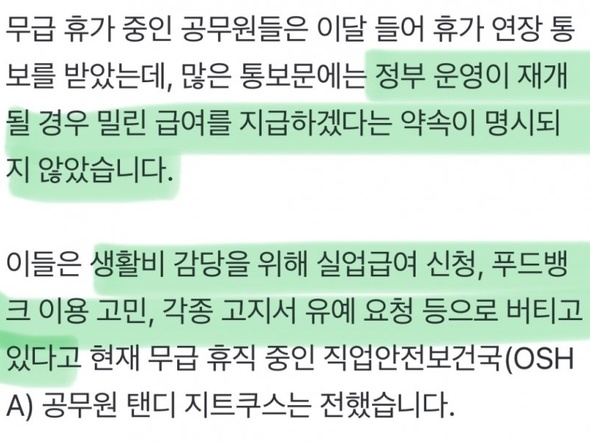 미국의원들: 히히 우리가 합의 안 하면 공무원들 월급 못 받지만 우린 다 받지롱