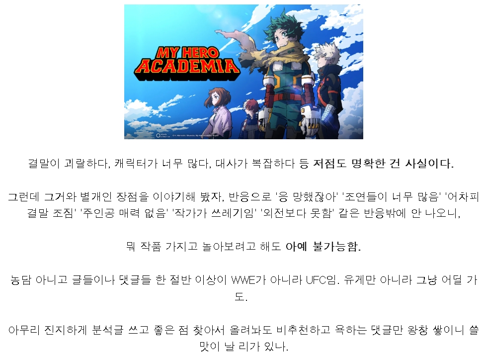 ㄹㅇ 비중이 없어... 아니 왜없는거야 바쿠고 씨벌 엔데버한테 줄 서사를 바쿠고한테 줬어야지... | 25.11.11 23:47 | | |