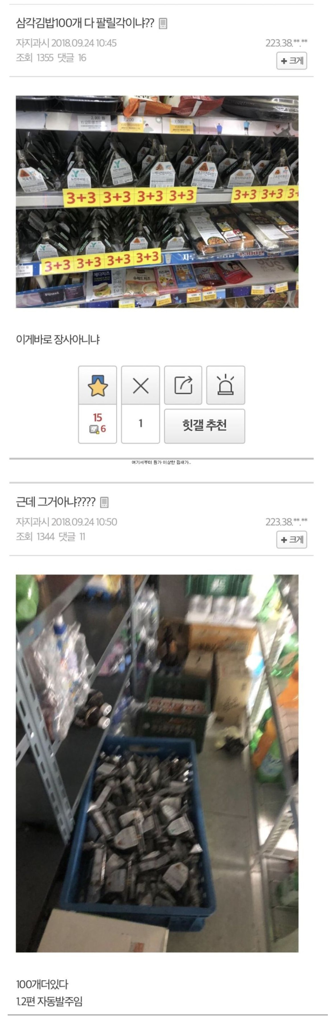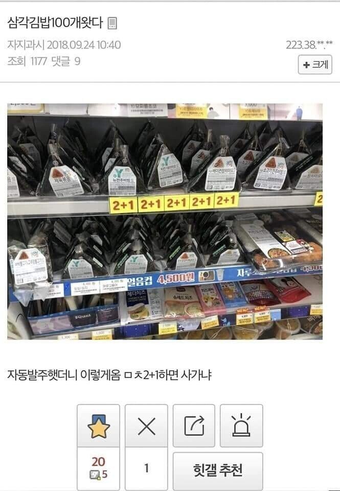 삼각김밥 발주 문제 생겨서 2+2하던 짤이 생각나네