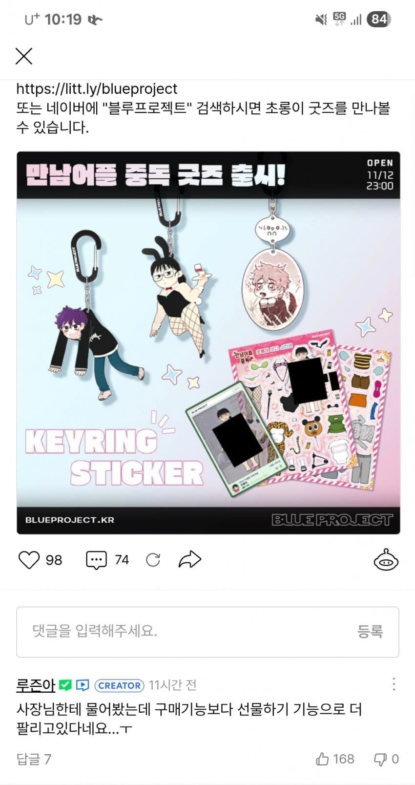 잘 팔리긴 한다고 함 '선물하기'가 | 25.11.14 20:15 | | |