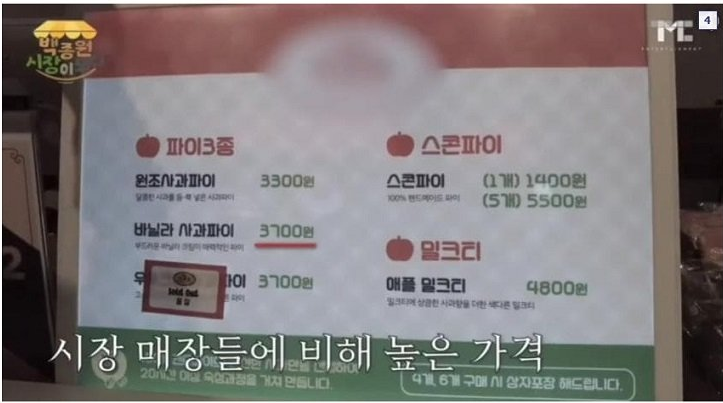 난 영상에서 이게 제일 어이가 없던데ㅋㅋㅋㅋㅋ 떡하니 원조 사과파이 3300원 써있는데 굳이 밑에 바닐라 사과파이 3700원에 밑줄처놓고 시장 매장들에 비해 높은 가격ㅋㅋㅋㅋㅋㅋㅋ 그래놓고 지가 만들어서 뭐 엄청나게 싼가 했는데 기본 사과파이는 3000원 크림 사과파이는 3500원에 팔음ㅋㅋㅋ바닐라 사과파이랑 200원 차이ㅋㅋㅋ 기본 사과파이는 물론 뭐 2500원에 가격 낮췃다고 하긴하는데 그게 뭐 영상만들어서 저격할만큼 터무니없이 높은 가격이었나?ㅎ 그리고 모든 가게가 다 가격이 싸야 된다는것도 말이 안되는게 저기가 축제때 한탕 하고 빠지는 바가지 가게도 아니고 3300원 이어도 2500원짜리 백종원 사과파이보다 그만큼 더 품질이 좋으면 잘 될것이고 (실제로 잘됨) 어느집에서는 짜장면이 5천원이고 어디는 만원이라도 그만큼 더 맛있어서 그만한 값어치를 내면 문제가 없는것인데ㅎ