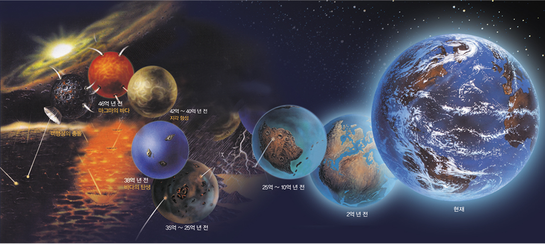 지구가 지질활동에 의해 매우 뜨거웠다가 지금의 상태로 식은거니까 수프가 맞음