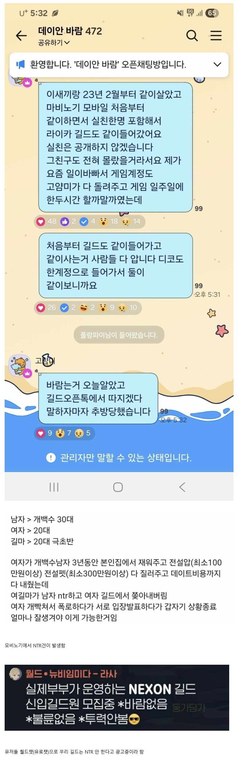 ...? 마비M에서도 치정관계 터졌다고? 게임내 결혼 상대 물건 뜯다가 결국 자살까지 시킨 놈도 나온게 원본인데?
