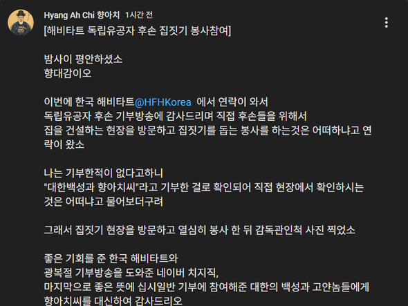 본문에 적힌 대로 누가 '대한 백성과 향아치'로 기부해서 초대 받음 댓글반응은 "그럼 향아치 이름으로 기부하면 향아치 노동 시킬수 있다 메모"ㅋㅋㅋㅋ