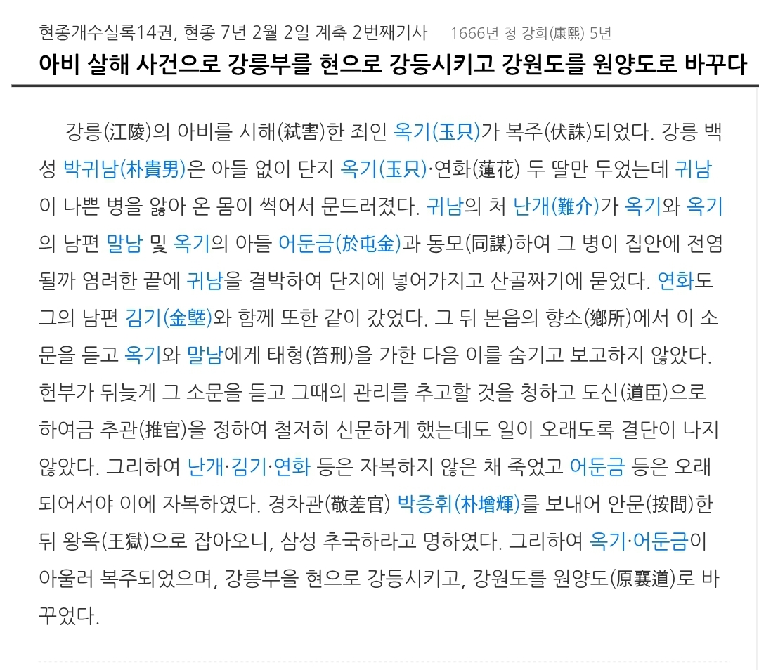 그나마 비슷한게 조선왕조실록 현종실록에 들어는 있음 다만 보다시피 이거 하니까 지방 강등에, 행한 애들 다 담궈버림. 심지어 이 사건은 진짜인지 결론도 안남. | 25.11.21 02:48 | | |