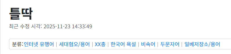윗 댓글 말대로 틀딱도 원래 디시 단어였고 ;;; | 25.11.23 22:24 | | |