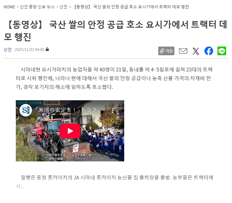 지금은 제자리겠지만 그게 그나마 제자리인거임.이미 아베가 농협을 민간기업화된 시점에서 고이즈미처럼 비축미 대량 방출하겠습니다~ 라고하면 농민들은 더 죽음. | 25.11.23 23:56 | | |