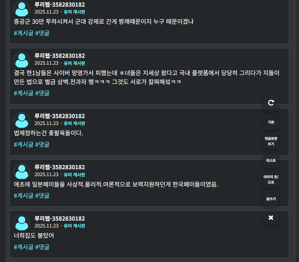 그런거야 vpn쓰면 그만이라 ip 어느 국가냐 크게 의미 없음 X도 솔까 좀만 지나면 새로운계정들이 vpn써서 다시 국가 속이고 활동할꺼다 | 25.11.24 00:22 | | |