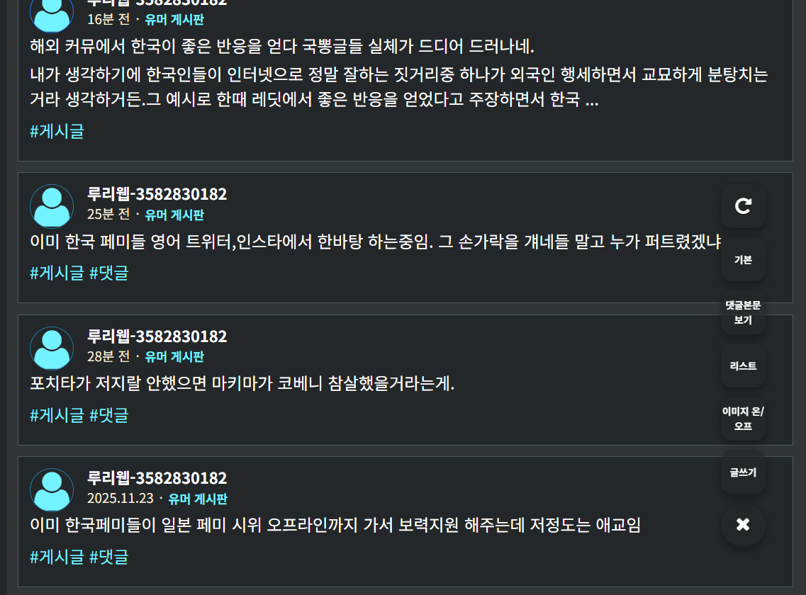일본반응)좋아요4받은 무관심글 이런거도 종종 보이지 일본유저들 스토킹한다는 말도 나오고 | 25.11.24 00:24 | | |